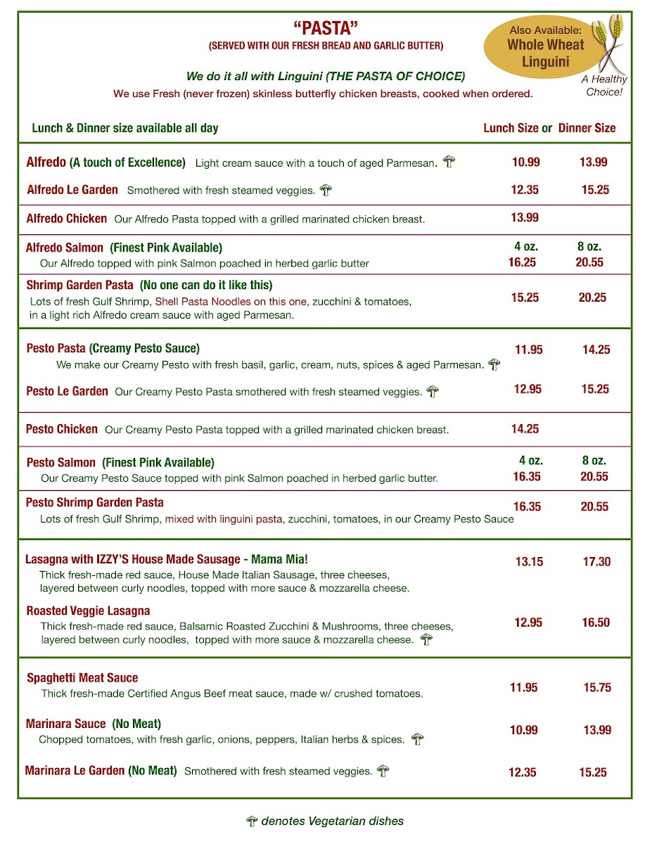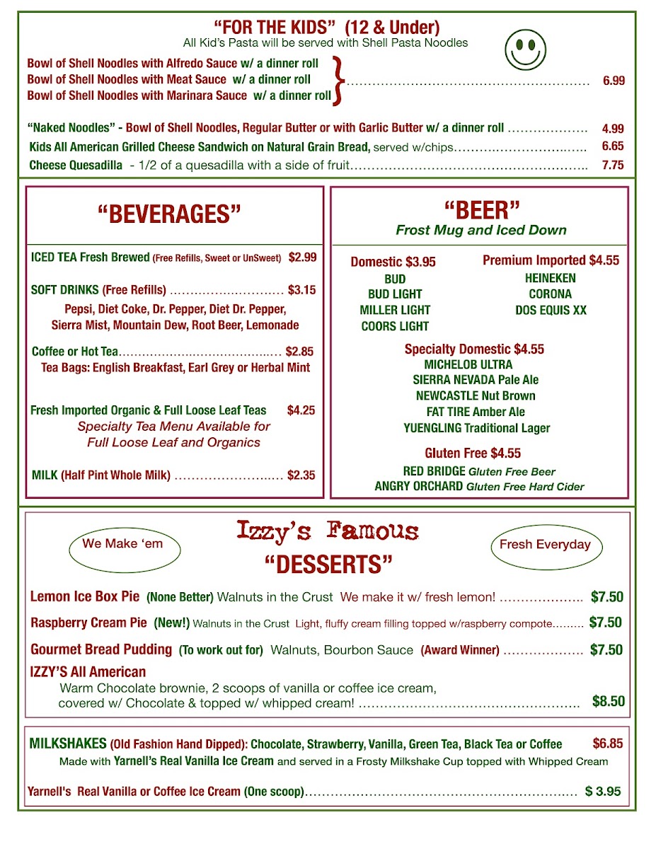 Izzy's Menu