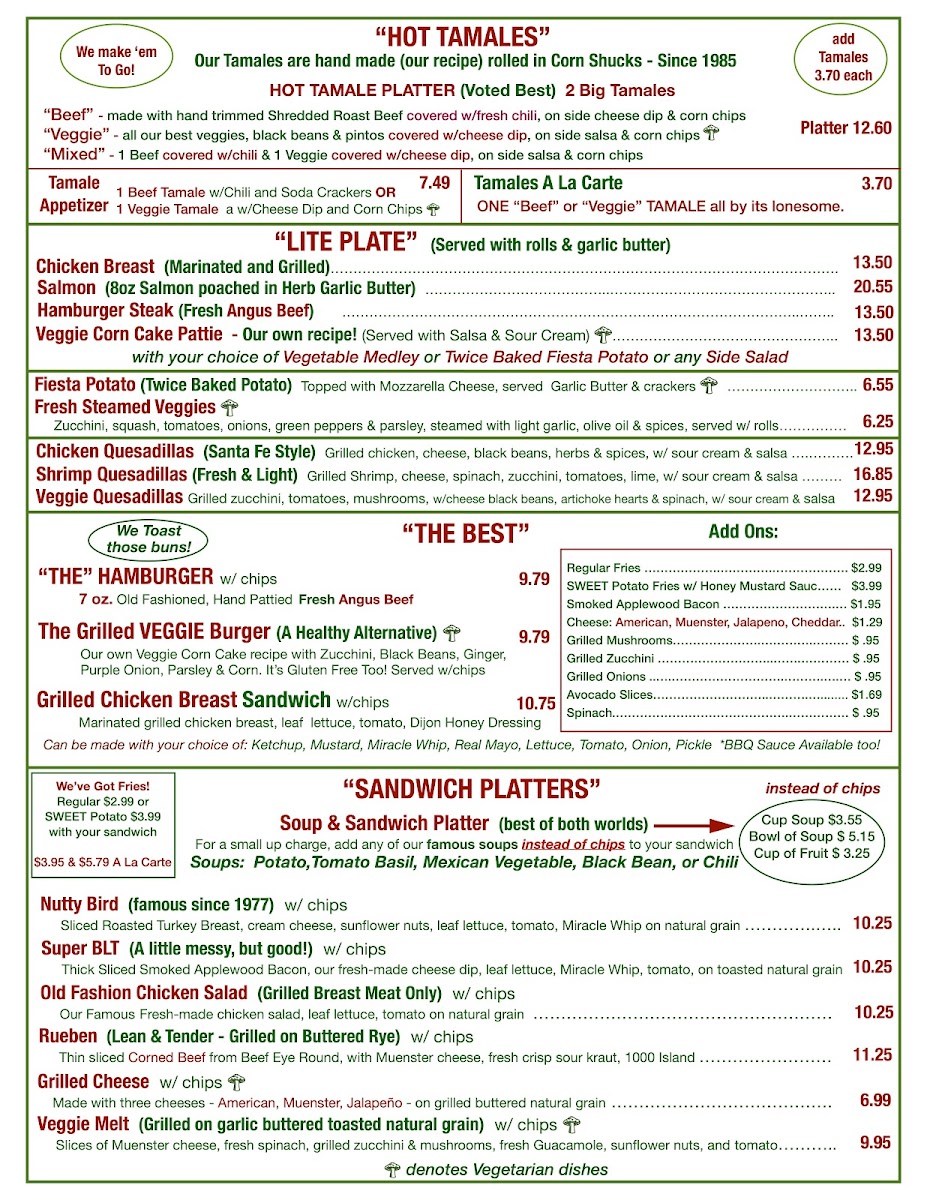 - Salads - Enjoy generous portions prepared with vibrant, organic greens.